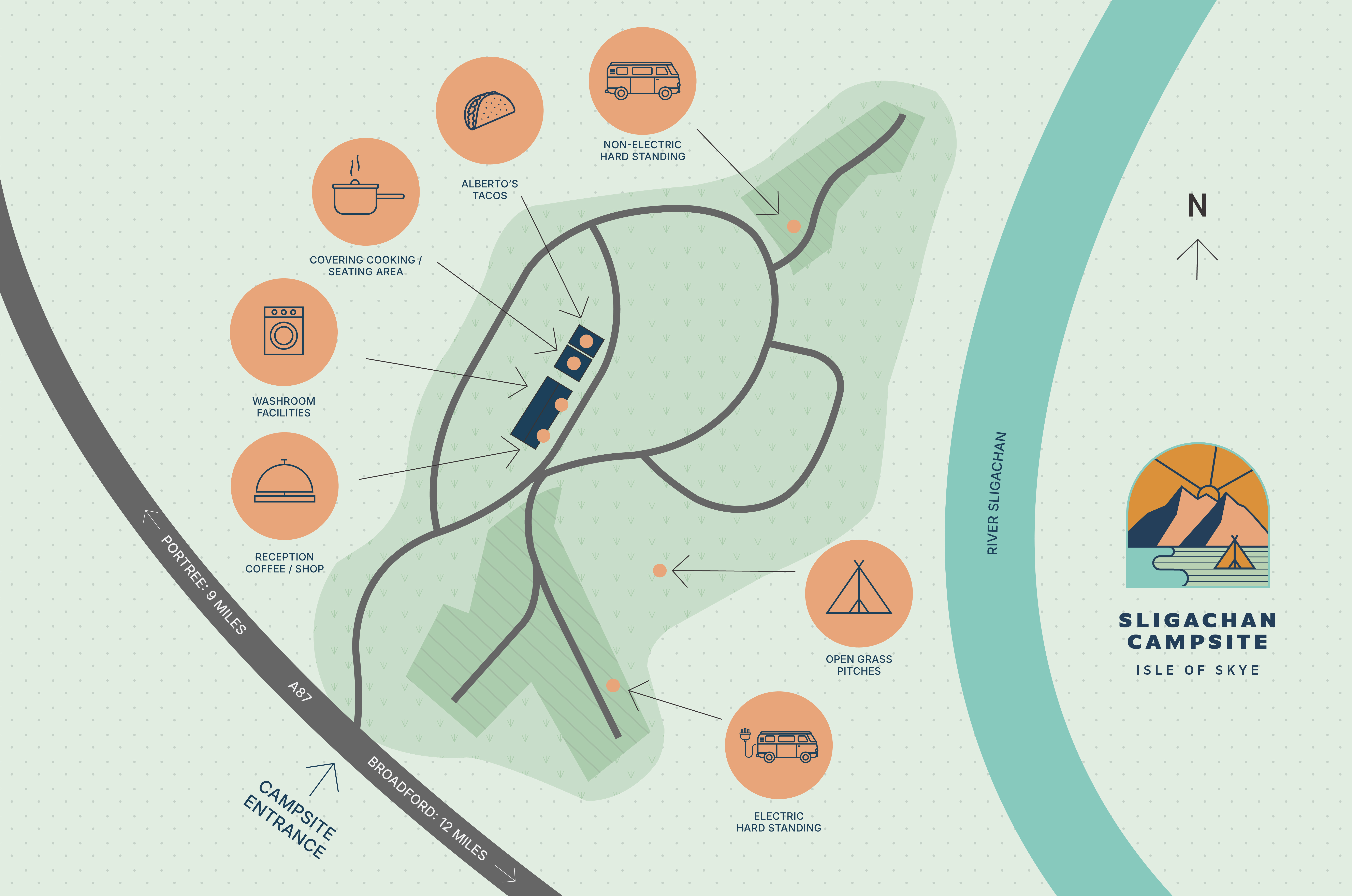Surrounded by Skye’s iconic peaks, the Sligachan Campsite offers scenic pitches, hot showers, WiFi, great coffee, and tasty food - sleep wild and rise refreshed!